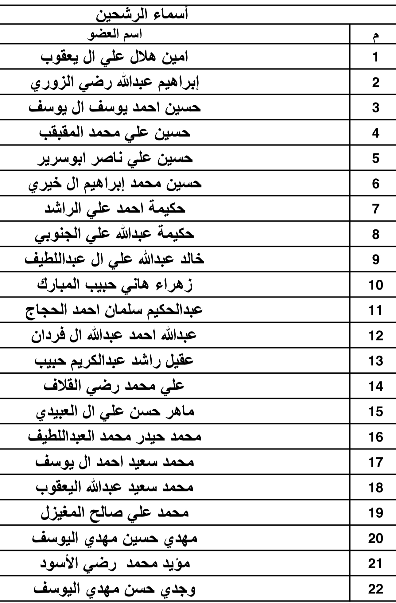 أعلن مجلس ادارة جمعية البر بسنابس عن قائمة المترشحين لعضوية مجلس الإدارة القادم الذي يضم 22 مترشحاً بينهم 3 سيدات.