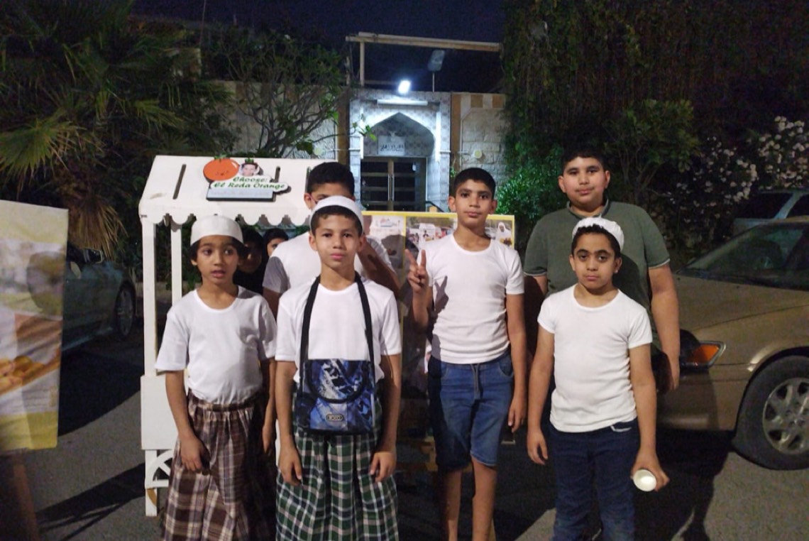 وبعربته البرتقالية، قام الرضا بتوزيع عصير البرتقال الطبيعي مجاناً على الحضور، من باب الضيافة والترحيب بالضيوف.