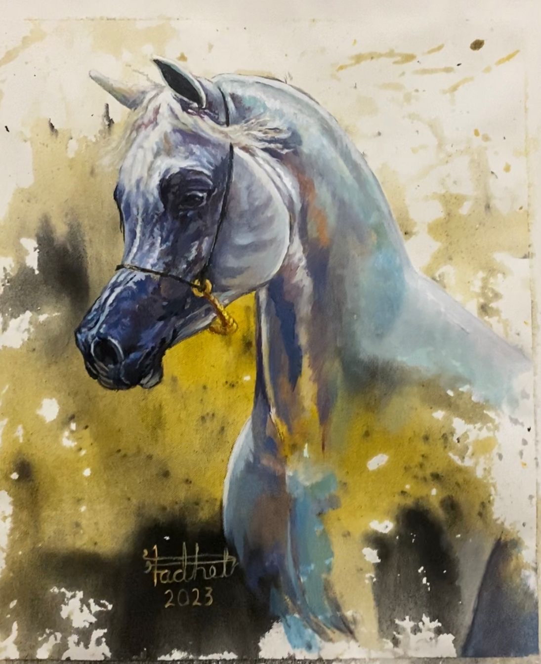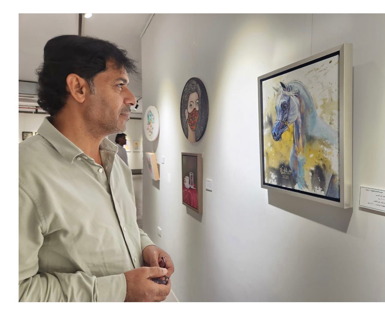 وقدم ”أبو شومي“ لوحته الفنية التي تحمل اسم ”وجه حصان“ والتي تعبر عن شغفه بتربية الخيول العربية الأصيلة والناحية الجمالية لهذا المخلوق الرائع.