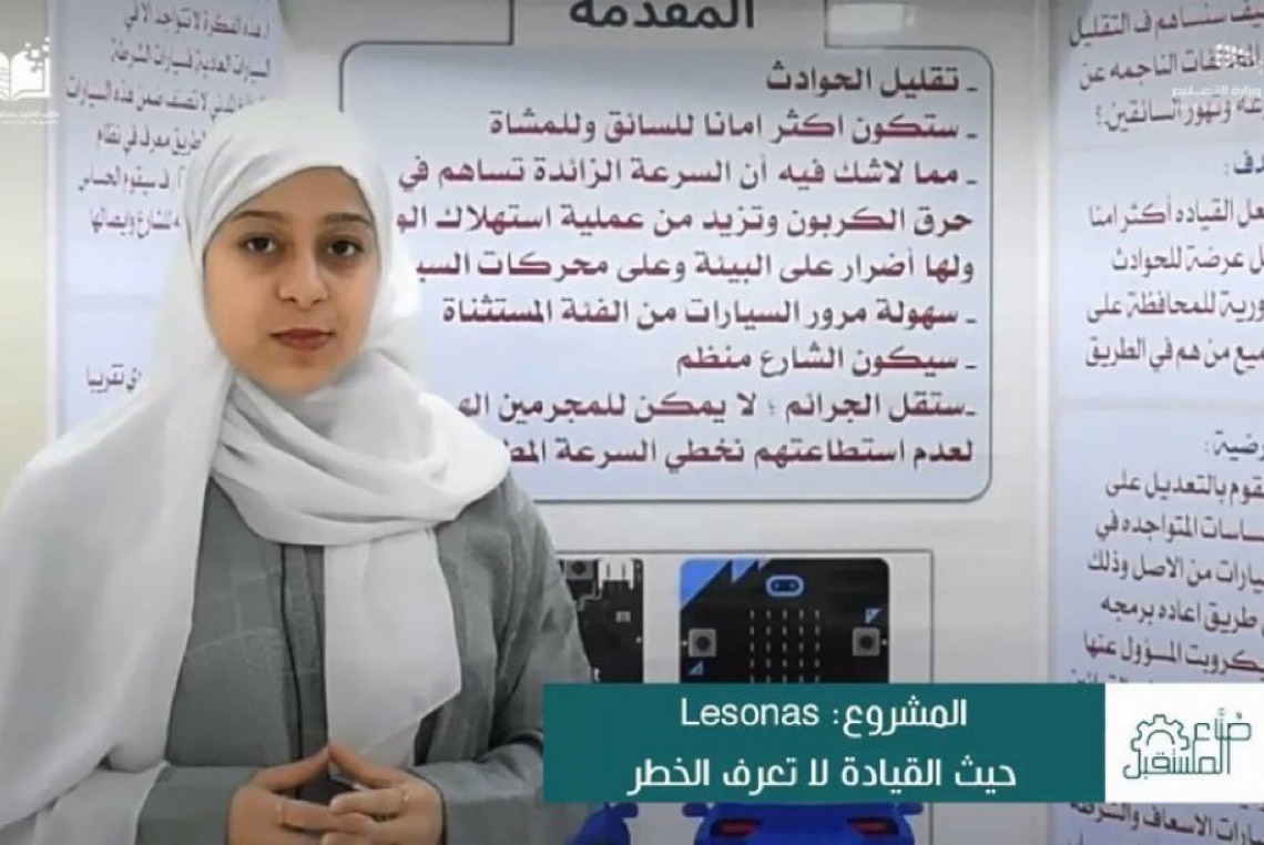 استعرضت الطالبة ”تقى آل سعيد“، من المدرسة الثانوية الأولى بصفوى بمحافظة القطيف، مشروعها في في مجال التقنية.