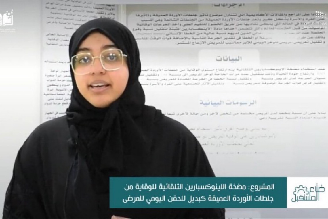 استعرضت الطالبة ”زهراء آل إبراهيم“، من المدرسة الثانوية الأولى بصفوى بمحافظة القطيف، مشروعها في مجال الطب الحيوي والعلوم الصحية.