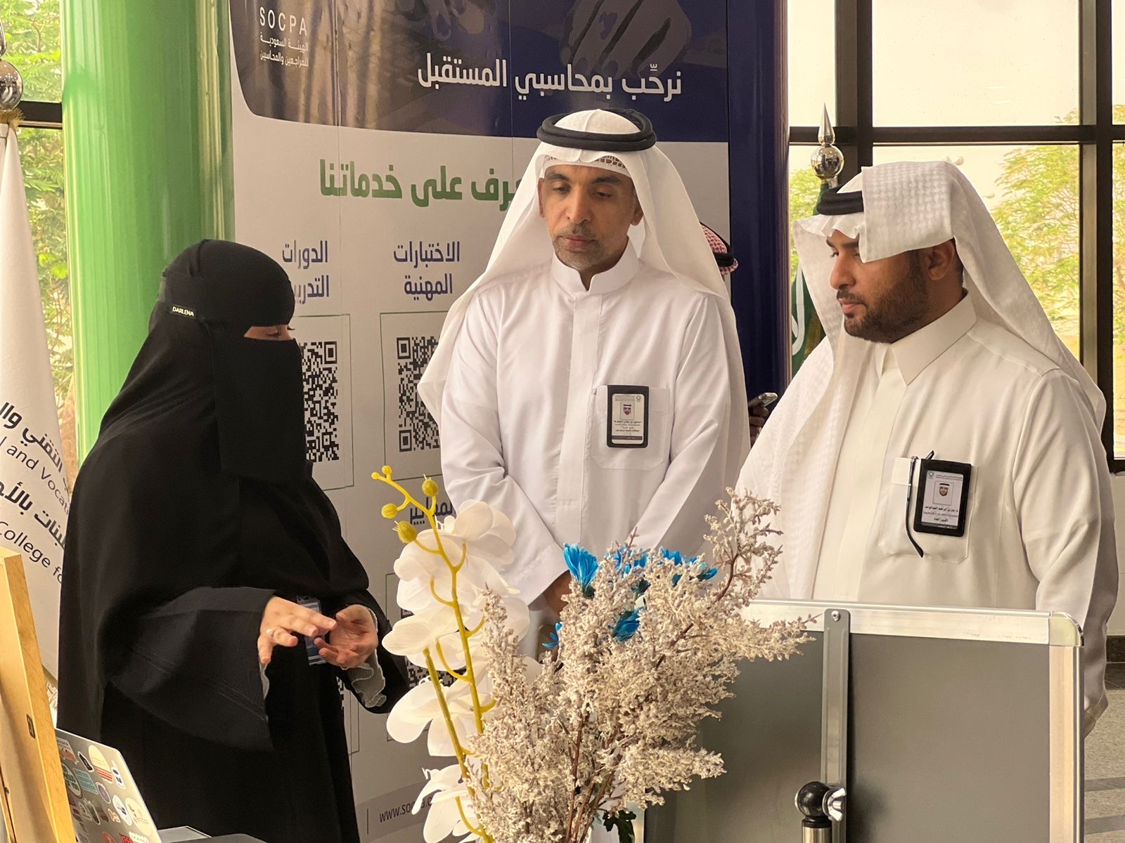 وتجول على أركان الجهات المشاركة، وقدمت عميدة الكلية التقنية للبنات بالأحساء سارة الصرعاوي، خلال الجولة، شرحًا حول أهمية الجهات المشاركة من تقديم استشارات داعمة لريادة الاعمال لجميع زوار الملتقى.