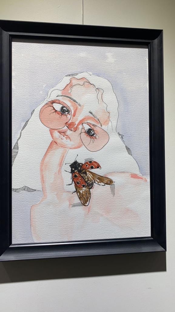 وشاركت شقيقتها سارة بثلاث لوحات حجم A3 من الفن التعبيري السريالي، والتي استخدمت فيها الألوان المائية وبعض الأحبار.