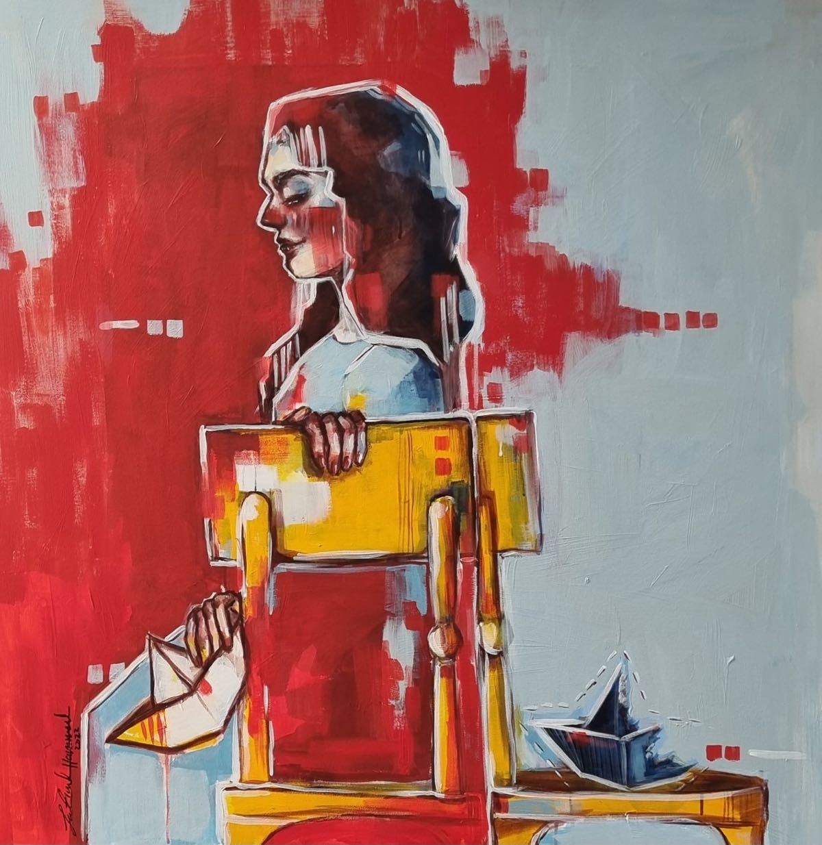 وعبرت عن هذه الفكرة بلوحتها التي حملت عنوان ”قارب على مقعد آخر“.