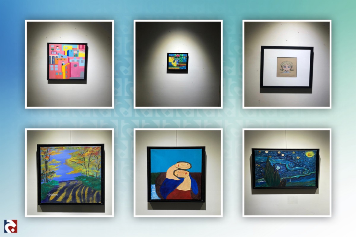 من جهتها، شاركت ”زينب الحداد“، بالصف الثالث المتوسط، بثلاث لوحات، عبارة عن دمج بين الشخصيات والمساحات اللونية، لافتة إلى بداية هوايتها منذ الصغر باستخدم الألوان الخشبية والإكريليك والمائي، وإنهاء عملها بنفس اليوم حيث تأخذ من ساعة إلى ثلاث ساعات.