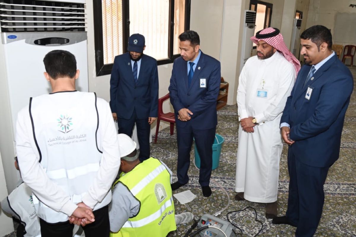 نفذ أعضاء فريق العمل التطوعي بالكلية التقنية في محافظة الأحساء، مبادرة صيانة أجهزة التكييف لأحد المساجد التابعة لمركز الدعوة والإرشاد بمحافظة الأحساء
