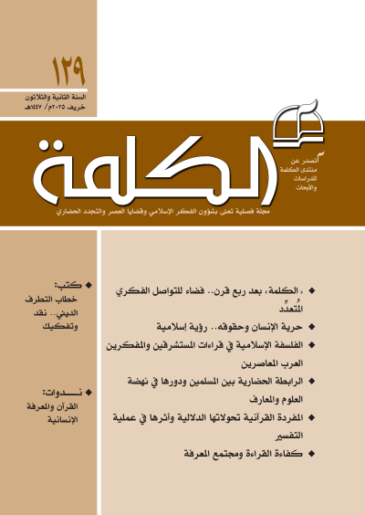 مجلة فصلية تعنى بشؤون الفكر الإسلامي وقضايا العصر والتجدد الحضاري تصدر عن منتدى الكلمة للدراسات والأبحاث