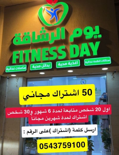 ”يوم الرشاقة“ يوم الرشاقة هو المتجر الرائد في السعودية للمكملات الغذائية وأغذية الحمية الصحية يقدم برامج غذائية مع خبراء التغذية لدعم فقدان الوزن والوصول للوزن المثالي بطريقة آمنة وصحية. أول 50 شخص: أول 20 شخص: متابعة لمدة 6 شهور و30 شخص: اشتراك لمدة شهرين مجانا الموقع الالكتروني: ... |