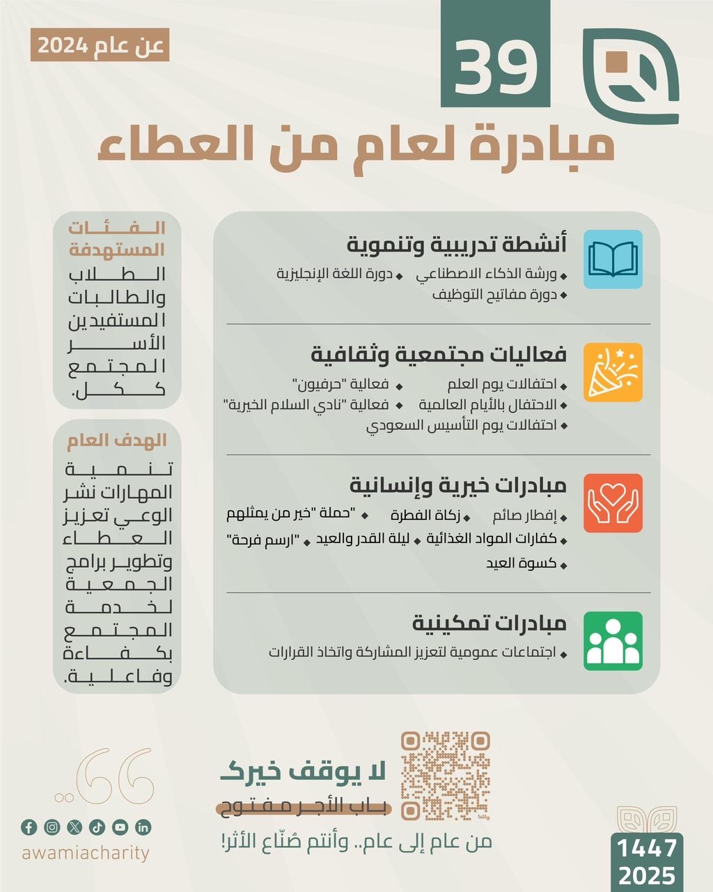 39 برنامجًا ومبادرة نفذتها جمعية العوامية الخيرية في 2024 لخدمة المجتمع