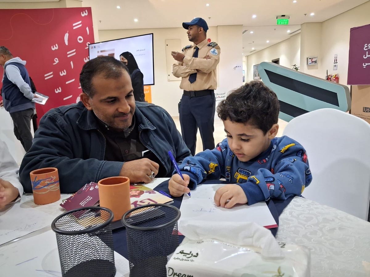 وشهد اليوم الأول توافد عدد من الأطفال الذين انخرطوا فور وصولهم في ورش عمل متخصصة دمجت بين فنون الكتابة والرسم، مترجمين شعار الفعالية ”نحن نصنعها معه“ إلى واقع حي.