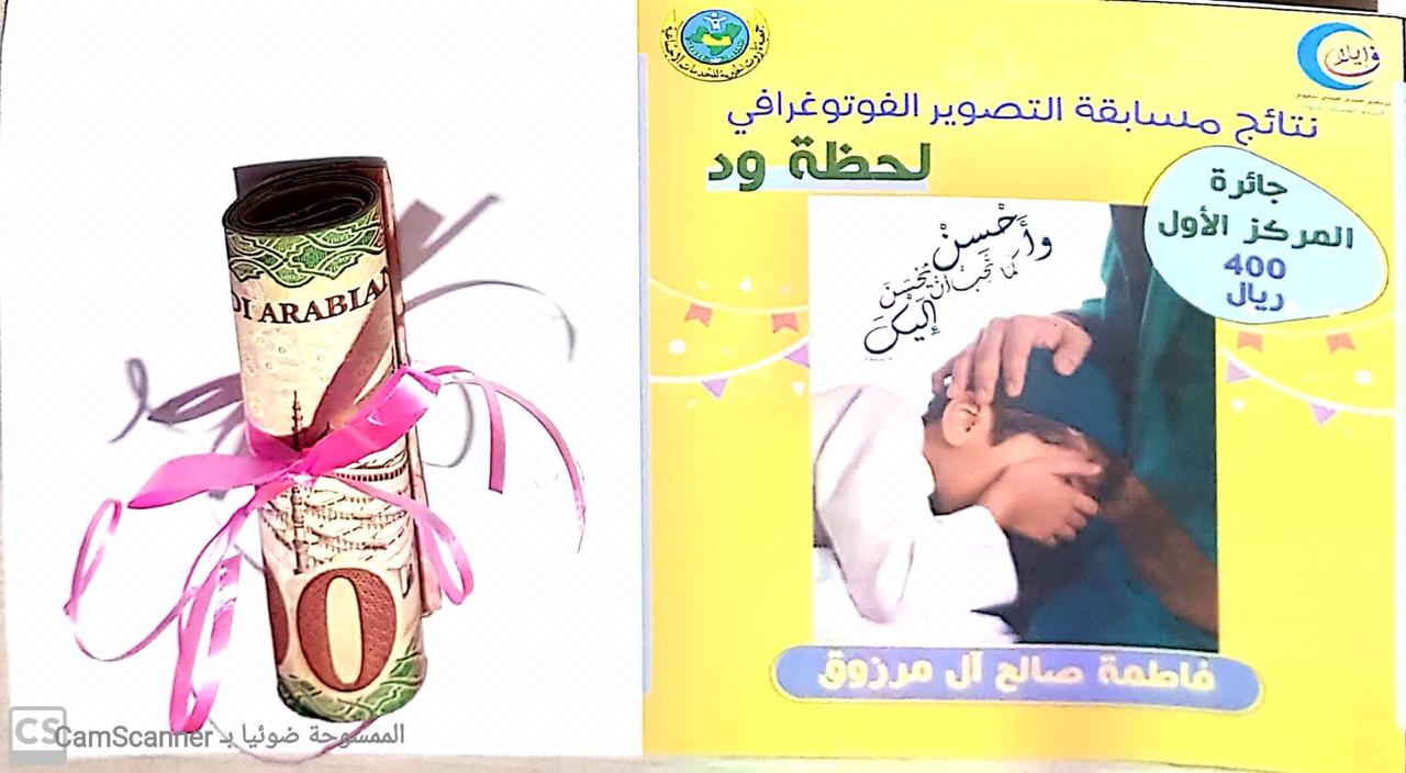 وأنوار عويشير الحائزة على المركز الثاني، وعلي آل سيف الحائز على المركز الثالث، منوهة باستلام الفائزين جوائزهم النقدية من مكتب الجمعية في تاروت.