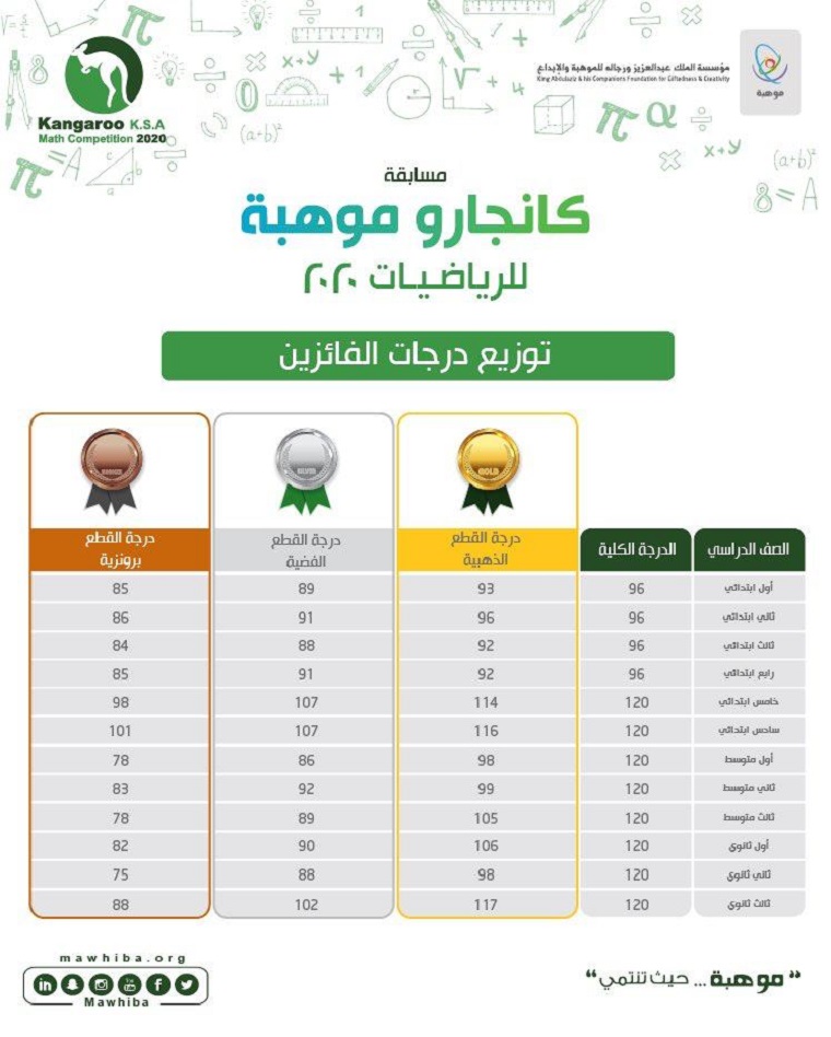 وأجري اختبار مسابقة الكانجارو في الرياضيات على نحو متزامن افتراضيا «عن بعد» خلال الفترة من يوم الثلاثاء العاشر من شهر شوال إلى يوم الخميس الثاني عشر من شهر شوال بمشاركة 43801 طالب وطالبة من مدارس التعليم العام والمدارس الأهلية في المملكة لجميع صفوف المراحل الدراسية الثلاث.