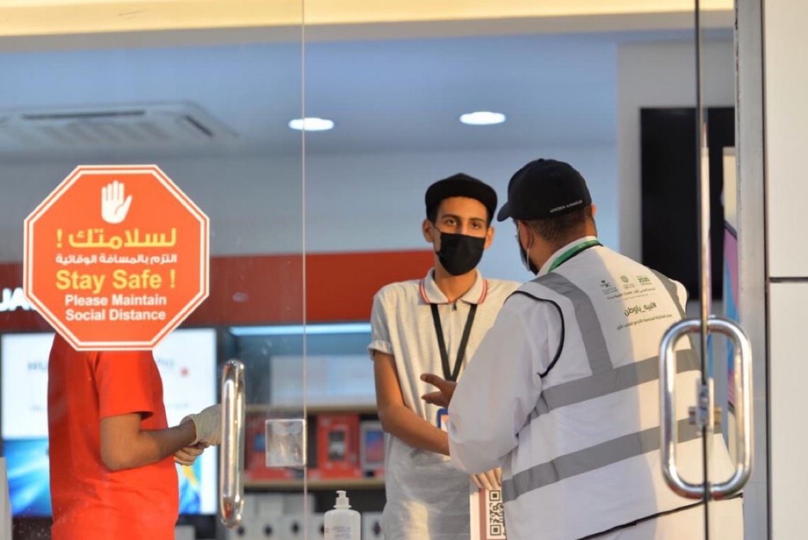 ولم تقتصر الجهود على توعية أصحاب المحلات فقط بل توعية المتسوقين ايضًا وتذكيرهم بضرورة الالتزام بالتباعد والحرص على التعقيم المستمر أثناء التسوق وعدم نزع الكمام، وعدم لمس الوجه والأدوات الشخصية أثناء التسوق، والتأكيد على ضرورة التخلص من الأكياس وتعقيم المشترتات.