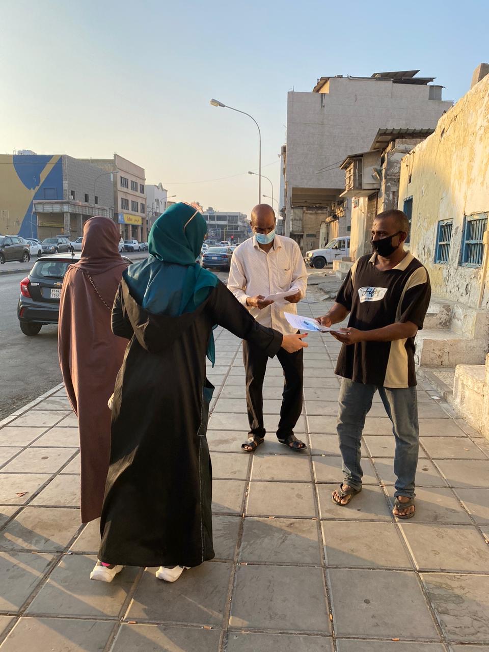 وقام فريق متطوعي الوحدة بتوزيع الكمامات ومنشورات التوعية والتباعد الصحي على المقيمين من جنسيات مختلفة، حيث تم توزيع 300 مطوية توعوية بلغات متعددة.