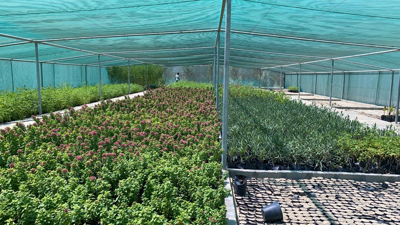 وقال بانه تمت تهيئة موقع المشتل بردم المناطق المنخفضة بالرمال، وإنشاء شبكة ري بنظام التبخير الرذاذي للمياه داخل البيوت ”الفايبرجلاس“ لتلطيف الجو، وإنشاء غرفة خاصة لخلط التربة وتجهيزها للزراعة، بالإضافة إلى عمل غرفة لإنبات البذور، وذلك في إطار الخطط المعدة لتجميل الشوارع العامة، والمتنزهات وزيادة الرقعة الخضراء ومساحة نصيب الفرد منها.