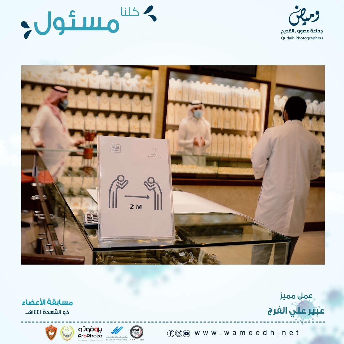 وتابع القول إنه وفي ظل هذه الجائحة رأت إدارة وميض تحديد محور ”كلنا مسئول“ لمسابقتها الشهرية الخاصة بالأعضاء لشهر ذي القعدة جاء ذلك كخطوة لخدمة المجتمع وإيصال رسالة توعوية، وتذكره بدور الحيوي في تحمّل مسئوليته في إتباع كل وسائل الوقاية والإحترازات لمحاربة تفشي هذا الوباء".