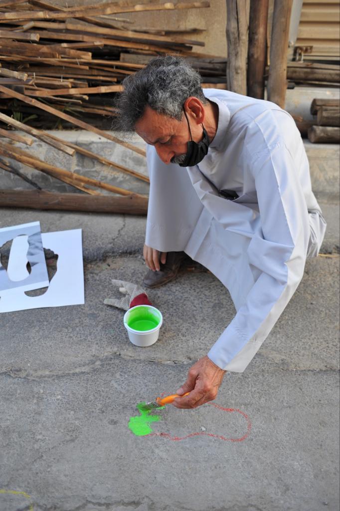 وشارك في المبادرة الأهلية التي أطلقها التشكيلي عبد العظيم الضامن مع فريق المحبة والسلام التطوعي، عشرون متطوع من الرجال والنساء والأطفال بالرسم والتلوين على الأبواب والطرقات الداخلية.