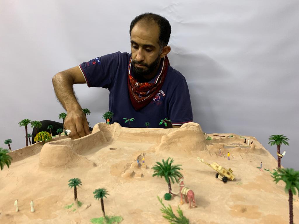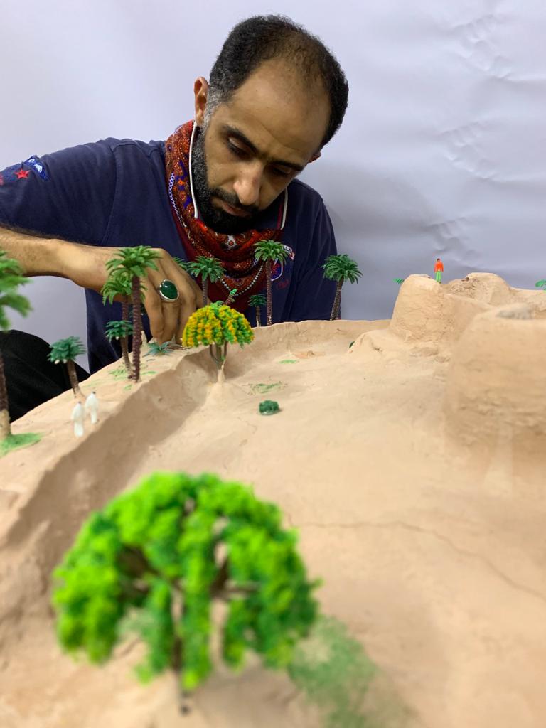 ولفت إلى استخدامه بعض المجسمات البشرية والحيوانات والأشجار لإضفاء جانب من الحياة على المجسم.