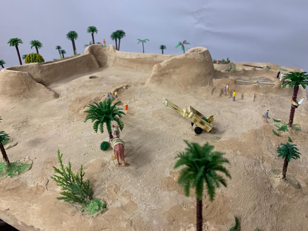 وبين أبو السرير وهو من أهالي تاروت، بأنه استغرق إعداد حوالي أسبوعين في عمل المجسم، مستخدما الخشب والحجارة الصغيرة لتكوين قاعدة متماسكة ممسوحة بالطين.