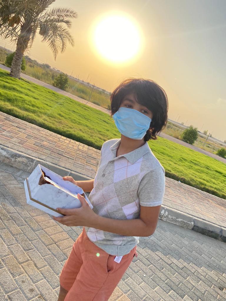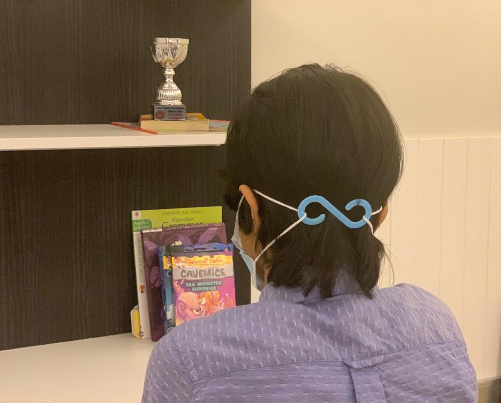 صمم الطفل مهدي آل إبراهيم مجسم لتخفيف ألم الكمامة بعد أن لامس متاعب والده لكثرة ارتداء الكمامة خلال ساعات عمله.