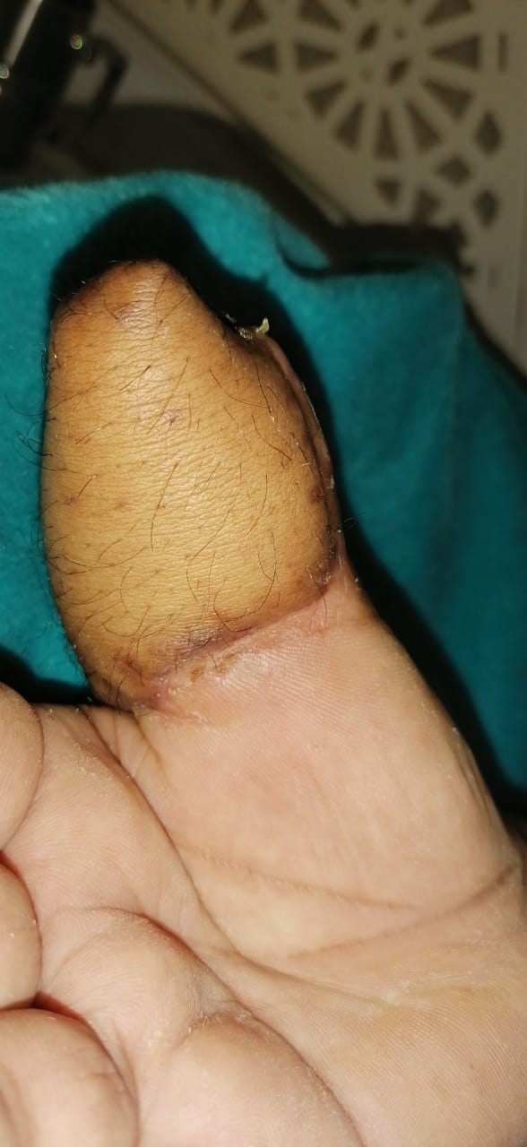 وقال بأن الإبهام يشكل 50٪ من وظيفة اليد والمحافظة عليه يعد شيئًا جوهريًا، مبينًا سعادته باستطاعتهم عدم بتره واستعدادهم لإجراء عمليتين أخريتين للمريض لتحسين المظهر والوظيفة بعد ستة أشهر.