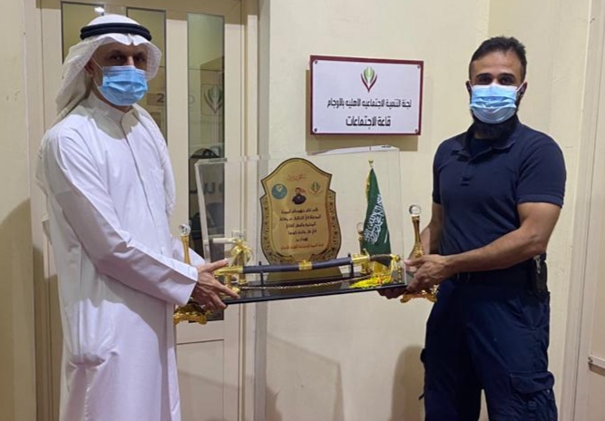 وتقدر اللجنة جهوده المميزة المبذولة في التخفيف عن معاناة المجتمع والوطن الغالي في ظل جائحة كورونا حيث يقوم بزيارة المصابين بفيروس كورونا في منازلهم ويقدم لهم العون والمساعدة.