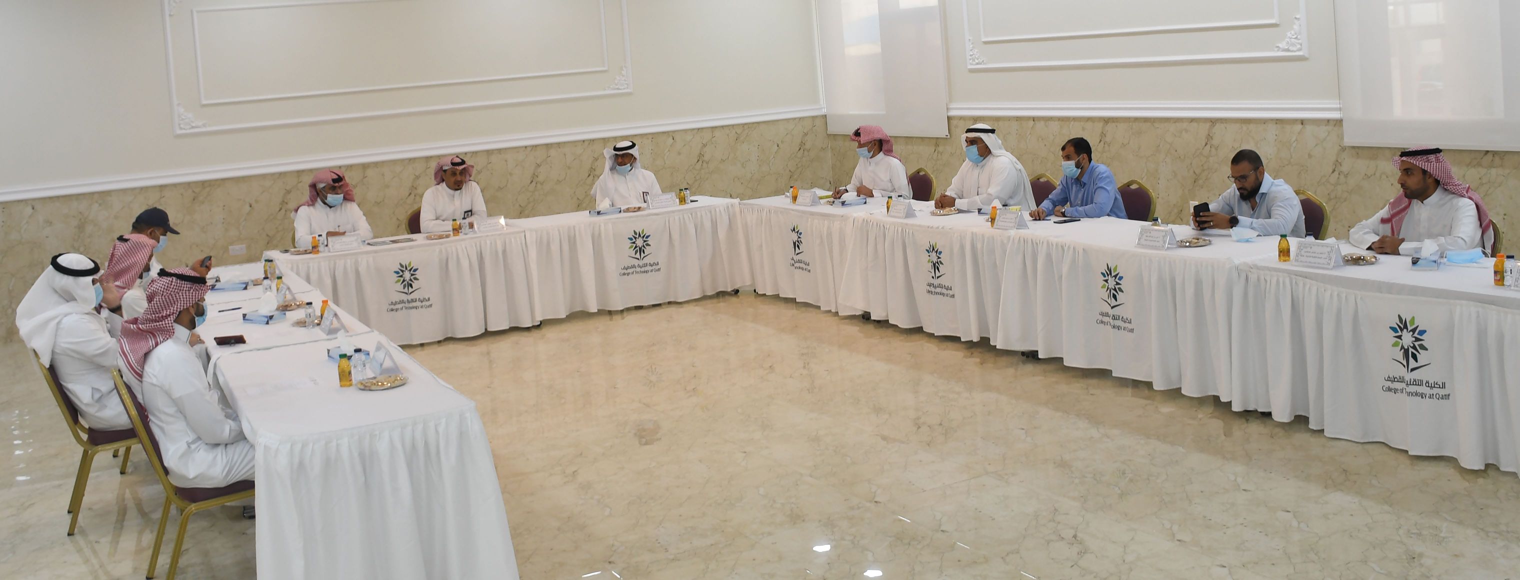 وناقش الاجتماع وضع الخطة الاستراتيجية للكلية للعام الحالي وتقييم نسبة الإنجاز للعام الماضي وكذلك الاحتياجات الخاصة بالأقسام التدريبة والإدارية والفنية والمشاريع المقترحة والعمل على وضع التوصيات اللازمة والأولويات لتنفيذها بما يسهم في استمرار ارتقاء وتميز الكلية.