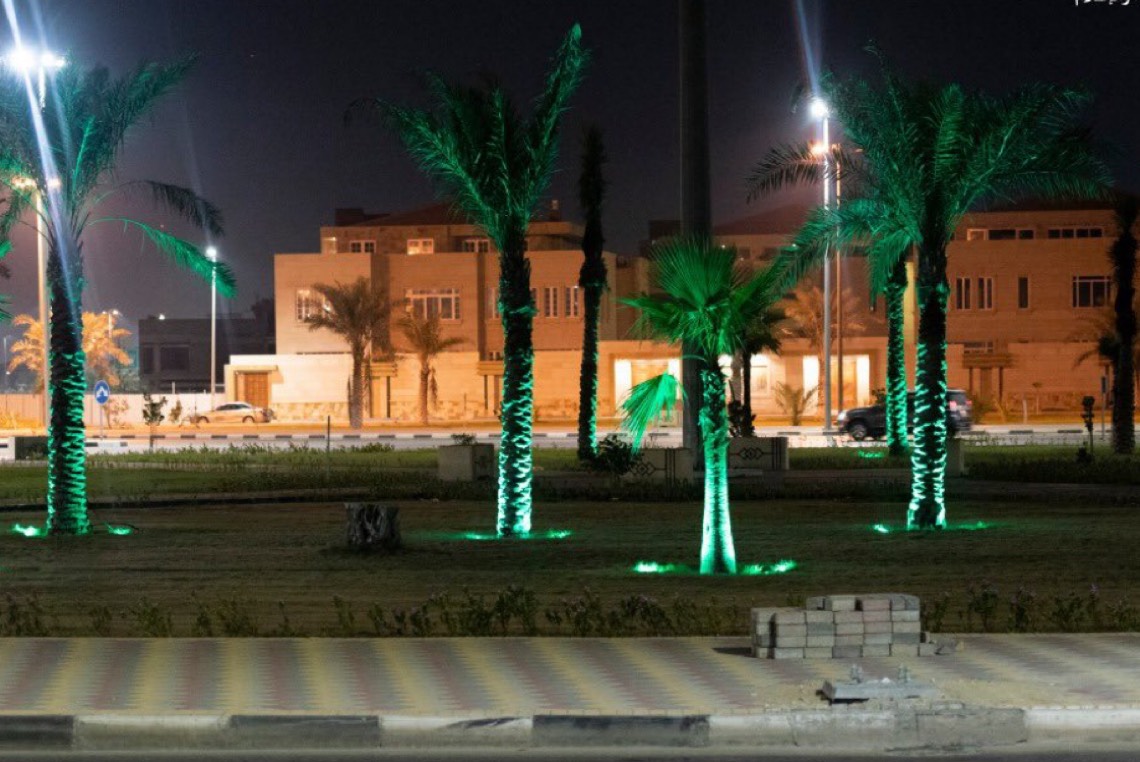 زينت بلدية محافظة القطيف، الشوارع الرئيسية بالمحافظة، بمناسبة الاحتفال باليوم الوطني 90 للمملكة، تحت شعار ”همة حتى القمة 90“.