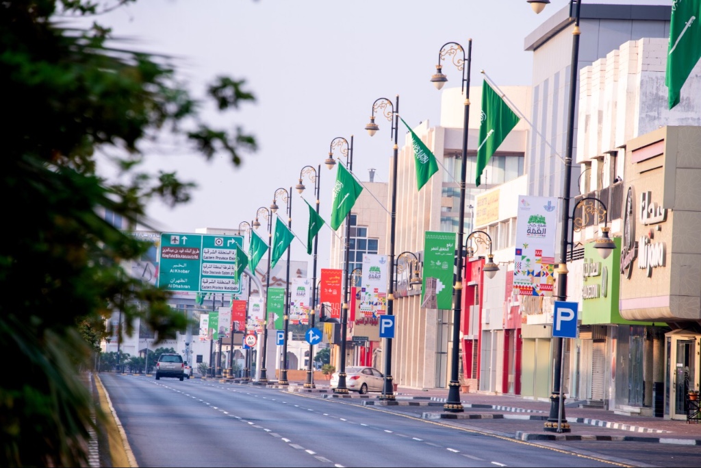 وقامت الأمانة بوضع خطة متكاملة، تتضمن التجهيزات والاستعدادات، من خلال قيام الإدارة العامة للكهرباء والإنارة بوكالة التعمير والمشاريع، بأعمال الزينة الخاصة باليوم الوطني، والتي تضمنت تركيب 5500 علم المملكة بالمقاس الكبير على أعمدة الإنارة، كذلك تركيب أعلام بالمقاس الكبير أيضا على أكثر من 100 سارية بالتقاطعات الواقعة على طريق الملك فهد ودوار سيهات.