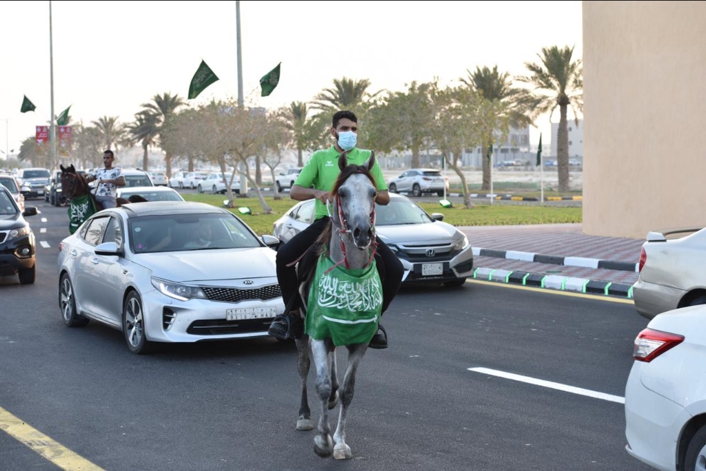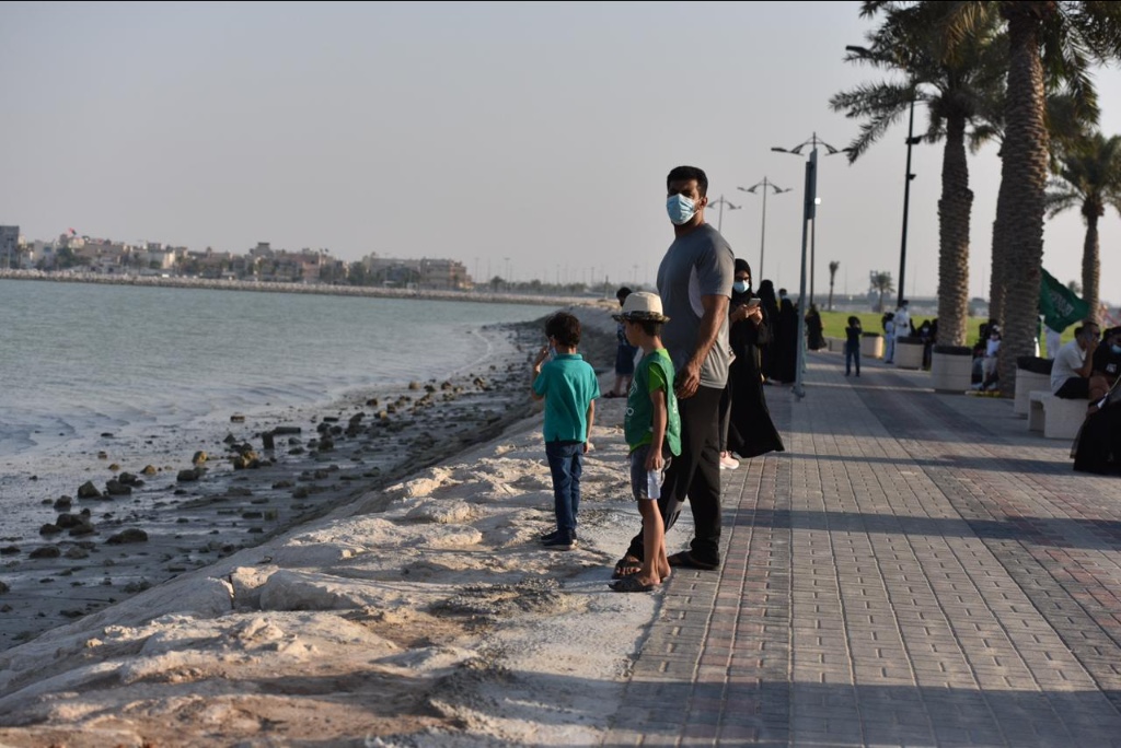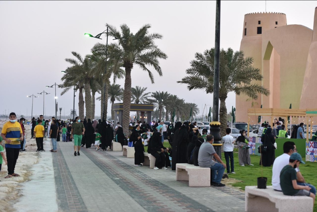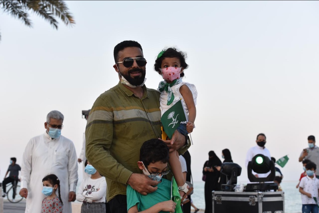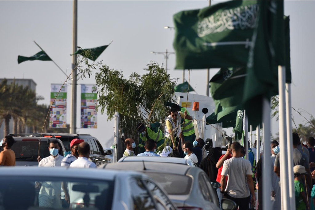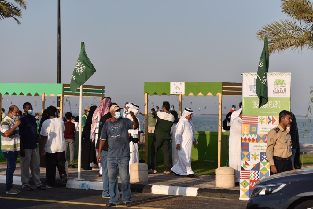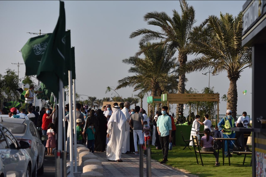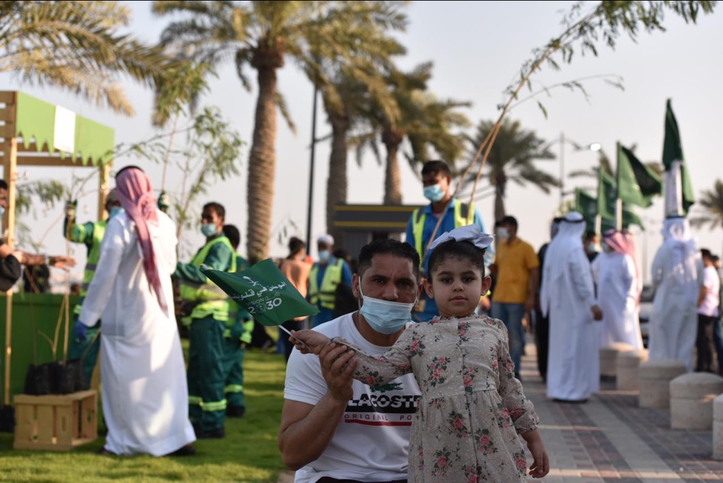 سيطر اللون الأخضر على الأجواء الاحتفالية التي نظمتها بلدية محافظة القطيف، اليوم الأربعاء، بمناسبة اليوم الوطني 90 بالواجهة البحرية بحي الشبيلي، وسط تنظيم عالي، والالتزام بالاحترازات الصحية لمواجهة "كورونا"، حيث تم توزيع 15 ألف علم.