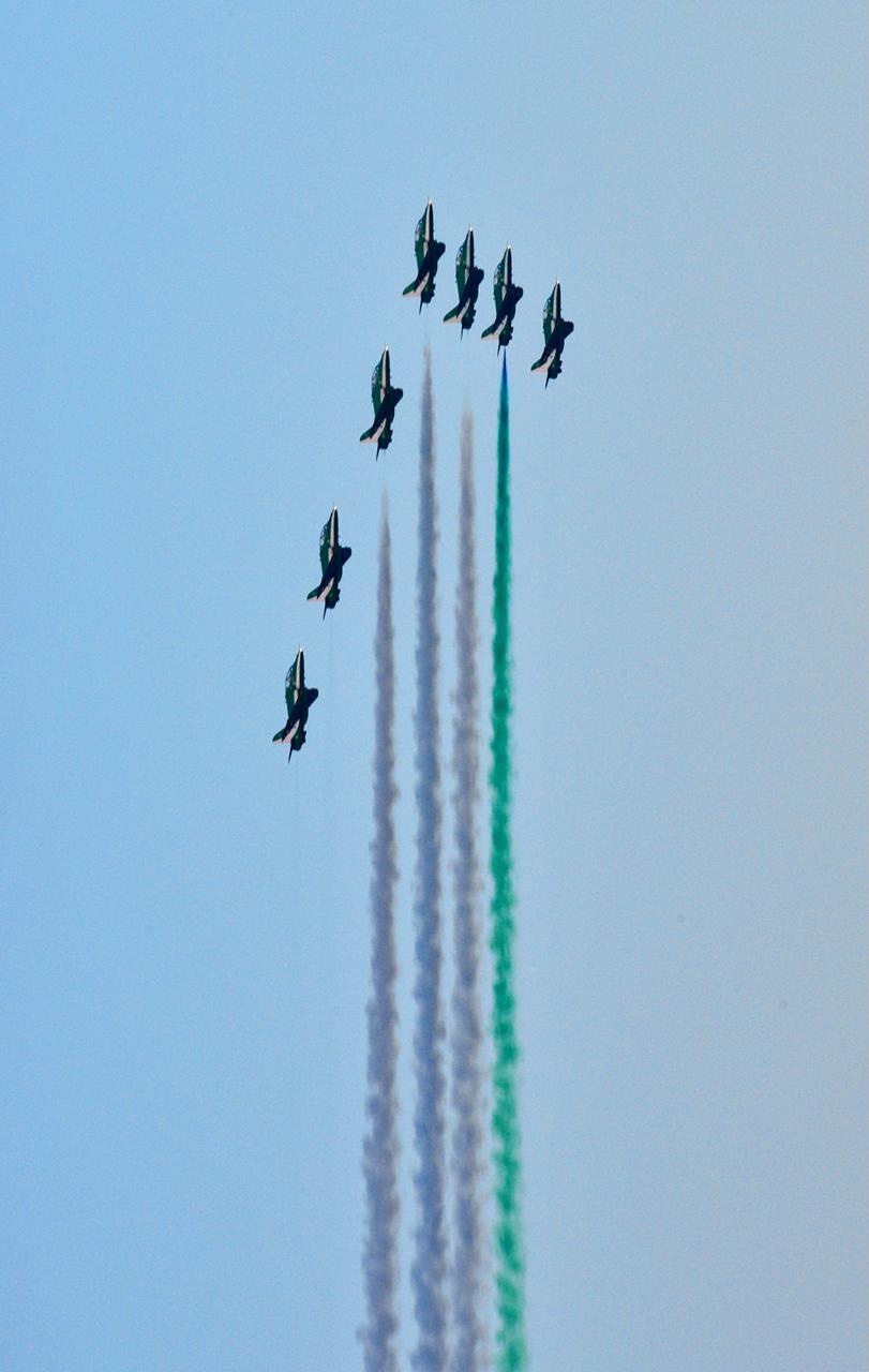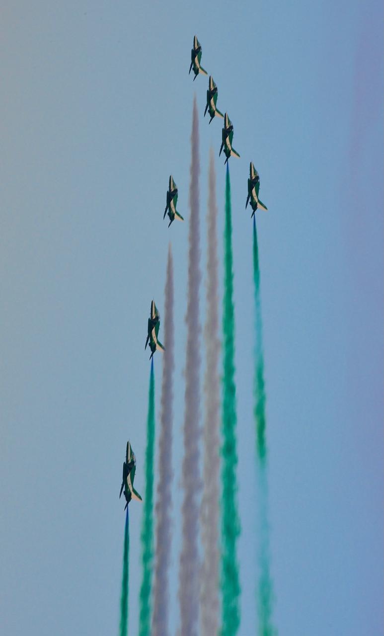 تلتها العديد من التشكيلات والرسومات الجوية بواسطة عدد من الطائرات الحربية المقاتلة «ف 15 إس أي».