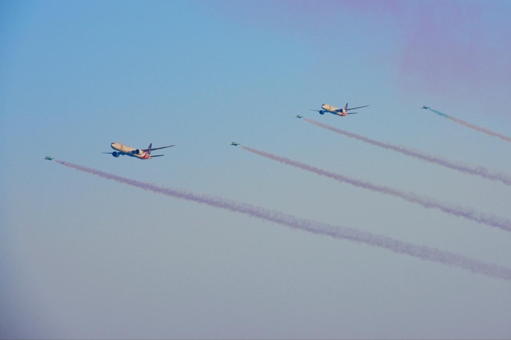 وشارك في العروض القوات الجوية الملكية السعودية، وفريق الصقور السعودية، وطائرة «بوينج 777» للخطوط الجوية العربية السعودية.