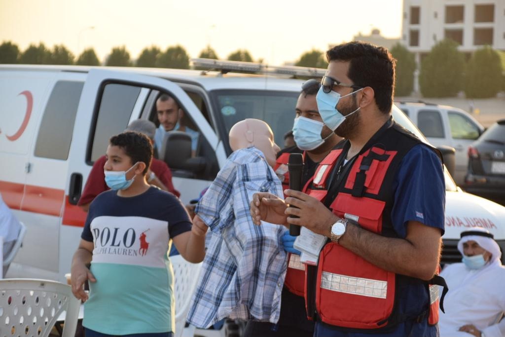 وأشار مؤسس فريق ”مسعفون بلا حدود“ حسين آل فتيل، إلى أنه تم تقديم عدد من الفقرات التي تضم الإسعافات الأولية، وقسم المسعفون إلى قسم متواجد في الموقع بالقرب من سيارة الإسعاف؛ لتقديم أي مساعدة عند الحاجة، وقسم يقوم بالإنعاش القلبي الرئوي ومناورة همليك ”إزالة الغصة“، إضافة إلى وجود بعض الحضور من فئة الصم والبكم وتمت الاستعانة بالشبل مهدي جاسم الأبيض للترجمة.