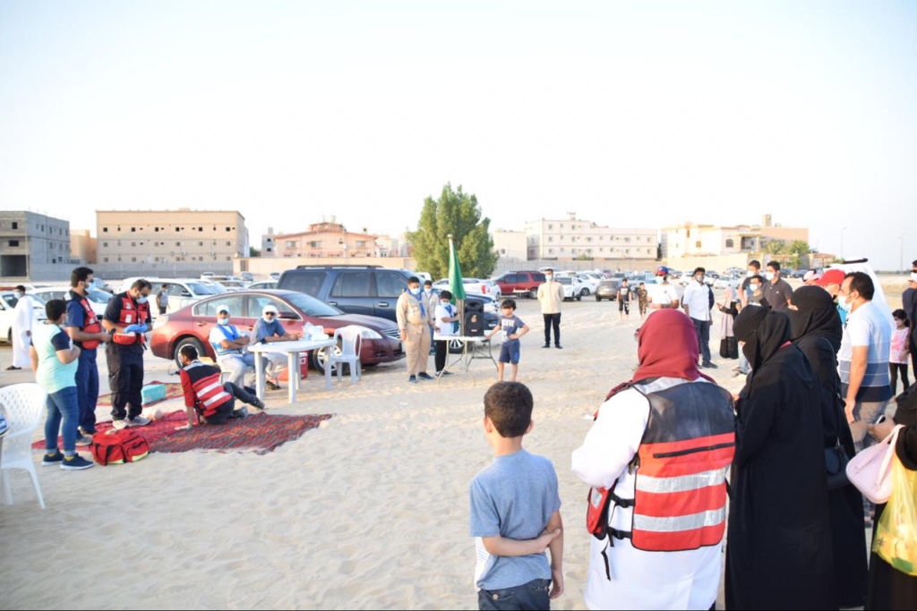 قدم مجموعة من المسعفين في شاطئ الرملة البيضاء، أمس، مبادرة؛ لنشر ثقافة الإسعافات الأولية تحت مظلة جمعية العمل التطوعي.