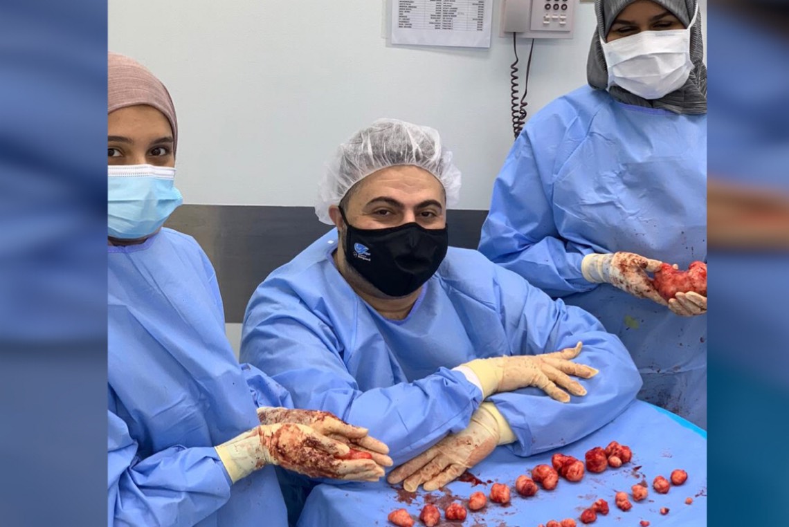 وأكمل: ”المريضة تبلغ من العمر 43 سنة، لم تنجب أبدًا وتعرضت للإجهاض بسبب الألياف التي كانت منتشرة وبشكل كبير في أماكن متعددة من الرحم والتي كانت تضغط على الجنين مما تسبب إجهاضه“.