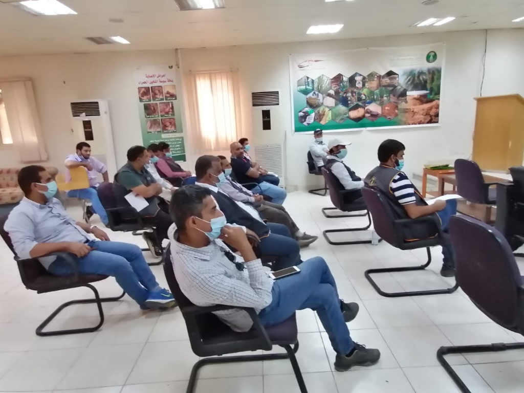 وتم استعراض البروتوكولات المتبعة التي أصدرتها وزارة البيئة والمياه والزراعة الخاصة بعلاج النخيل المصاب بسوسة النخيل الحمراء.