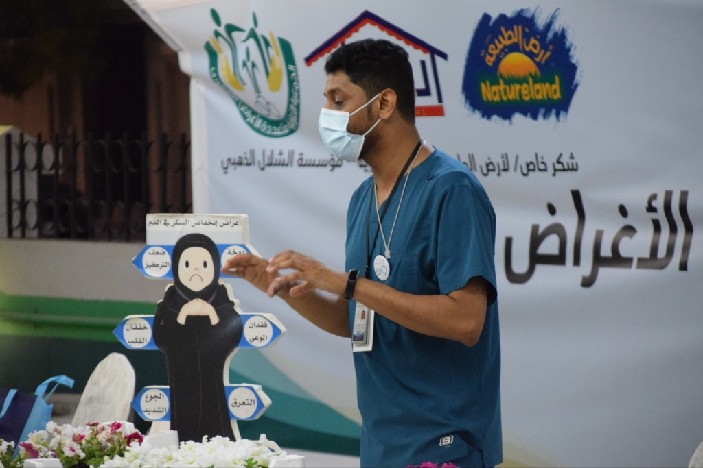 وشملت عدة أركان، منها ركن فحص السكر وقياس الضغظ، وركن الاستشارات الطبية والمعلومات المفيدة عن الضغظ والسكر، وركن الصيدلية وتعليم كيف أخذ ادوية الضغظ والسكري وطريقة استخدام الأنسلوين وكيفية حفظه.