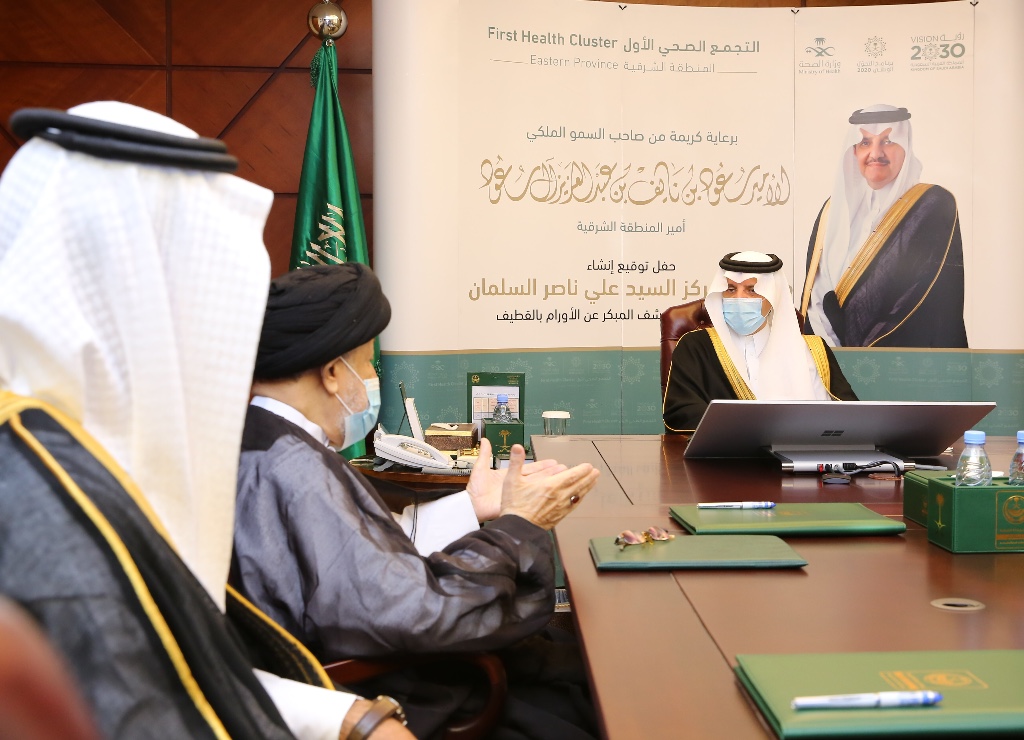 رعى أمير المنطقة الشرقية سعود بن نايف بن عبدالعزيز بمكتبه في ديوان الإمارة اليوم «الثلاثاء» توقيع اتفاقية شراكة مجتمعية بين التجمع الصحي الأول بالمنطقة الشرقية مثله رئيس المجلس الاستشاري عصام المهيدب، وممول المشروع السيد علي الناصر السلمان، لتمويل مشروع مبنى مركز الفحص الشامل والفحص المبكر للأورام والمختبر بالقطيف.