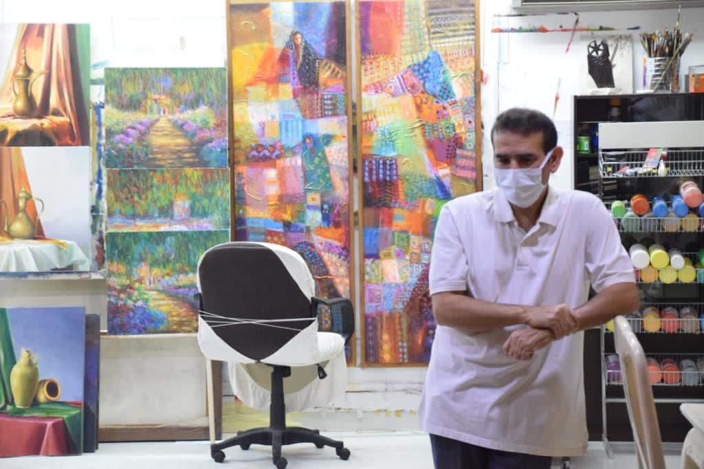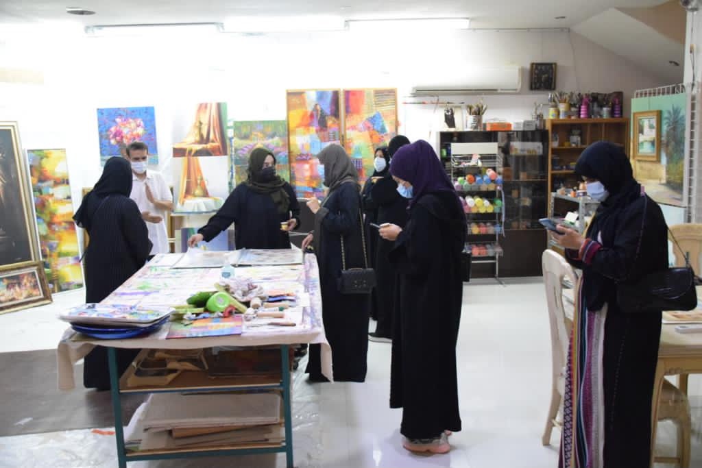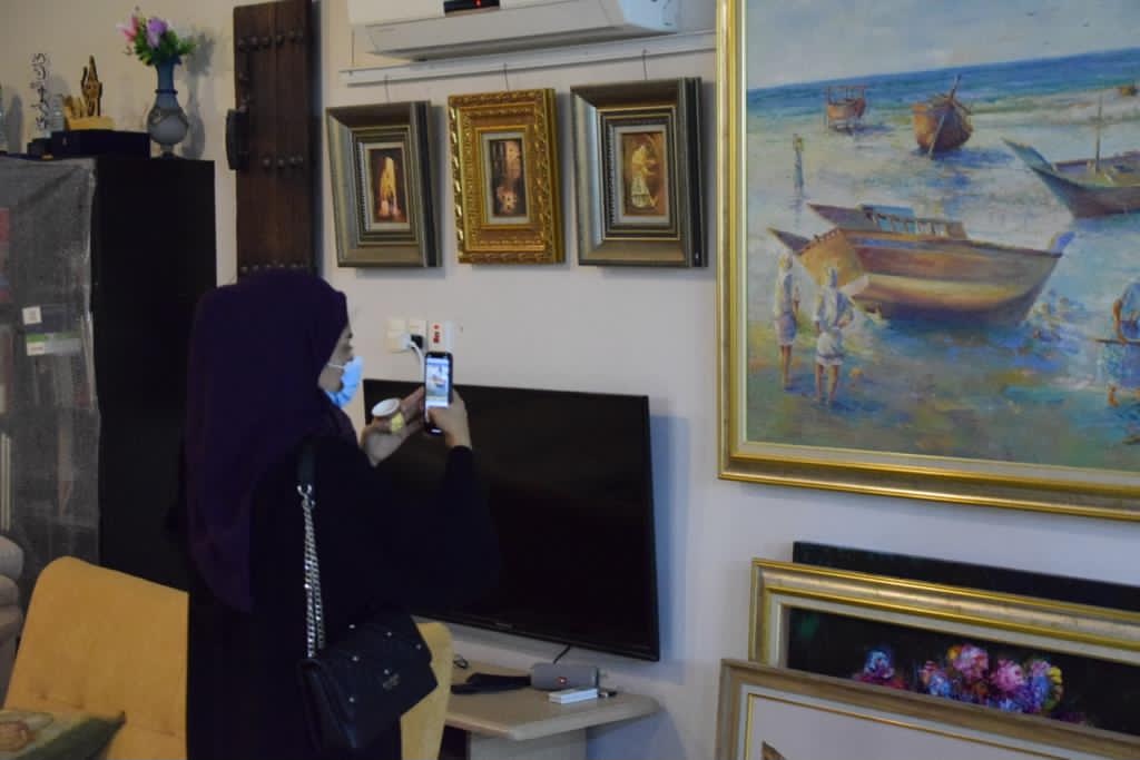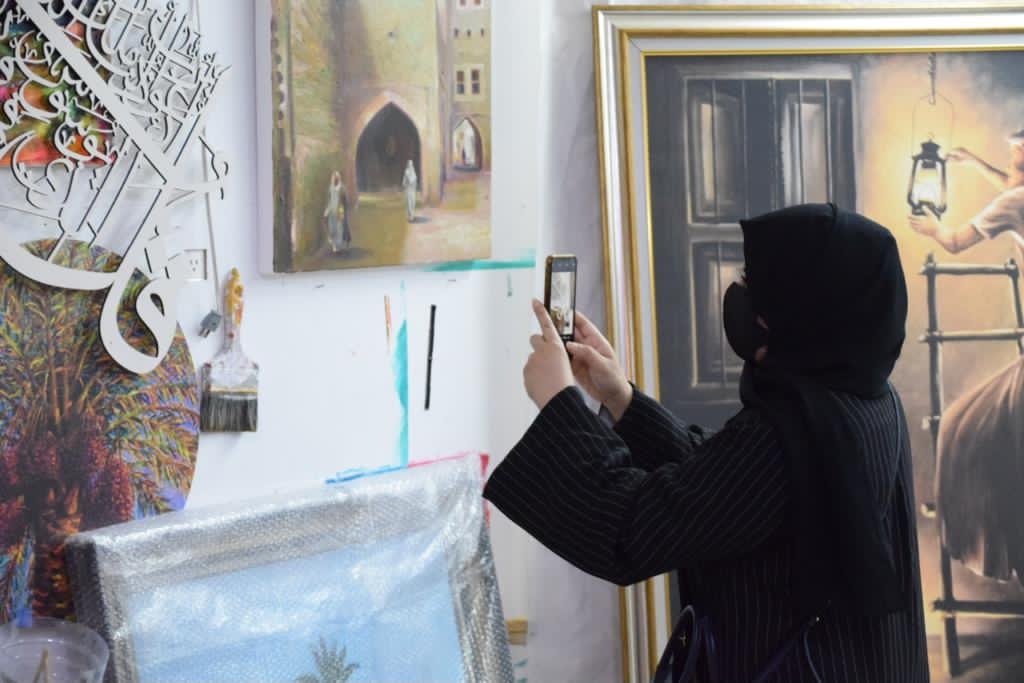 تضمنت الزيارة عرض أعمال متنوعة من مختلف السنوات، حيث يعد الحجي من المبدعين في مجال الرسم.