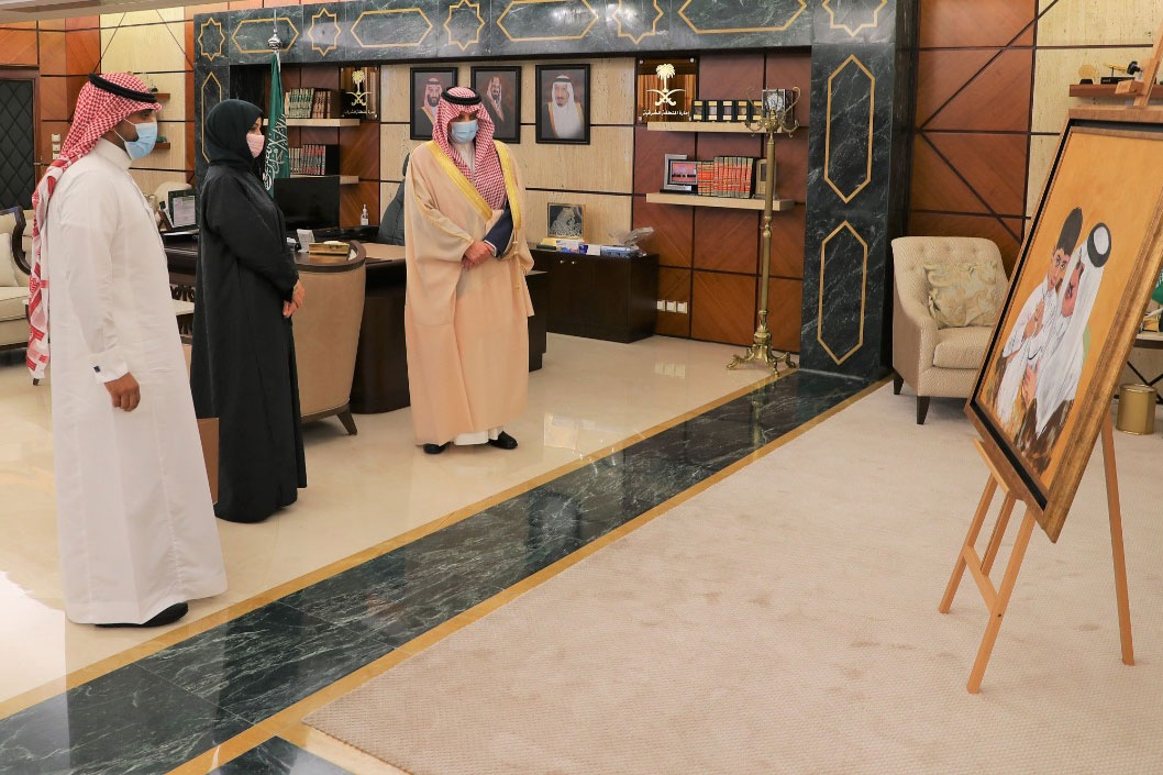 تشكيلية قطيفية تهدي أمير الشرقية لوحة ”أبُ للجميع“