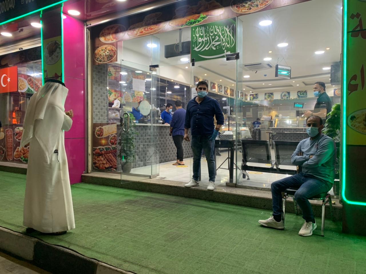خامسا: تعليق تقديم خدمات الطلبات الداخلية في المطاعم والمقاهي وما في حكمها والاقتصار على تقديم الطلبات الخارجية وذلك لمدة «10» أيام قابلة للتمديد، مع عدم السماح لأي تجمهر ينتج عن تلك الطلبات الخارجية، وأن تقوم وزارة الشؤون البلدية والقروية والإسكان بإغلاق المنشأة المخالفة لذلك لمدة «24» ساعة، وفي حال تكرار المخالفة للمرة الأولى يكون الإغلاق لمدة «48» ساعة، ولمدة «أسبوع» في حال تكرارها للمرة الثانية، ولمدة «أسبوعين» للمرة الثالثة، وفي حال تكرار المخالفة للمرة الرابعة وأكثر، يكون إغلاق المنشأة لمدة «شهر»، مع عدم الإخلال بتطبيق أي عقوبة أخرى مقررة في شأن تلك المخالفات.