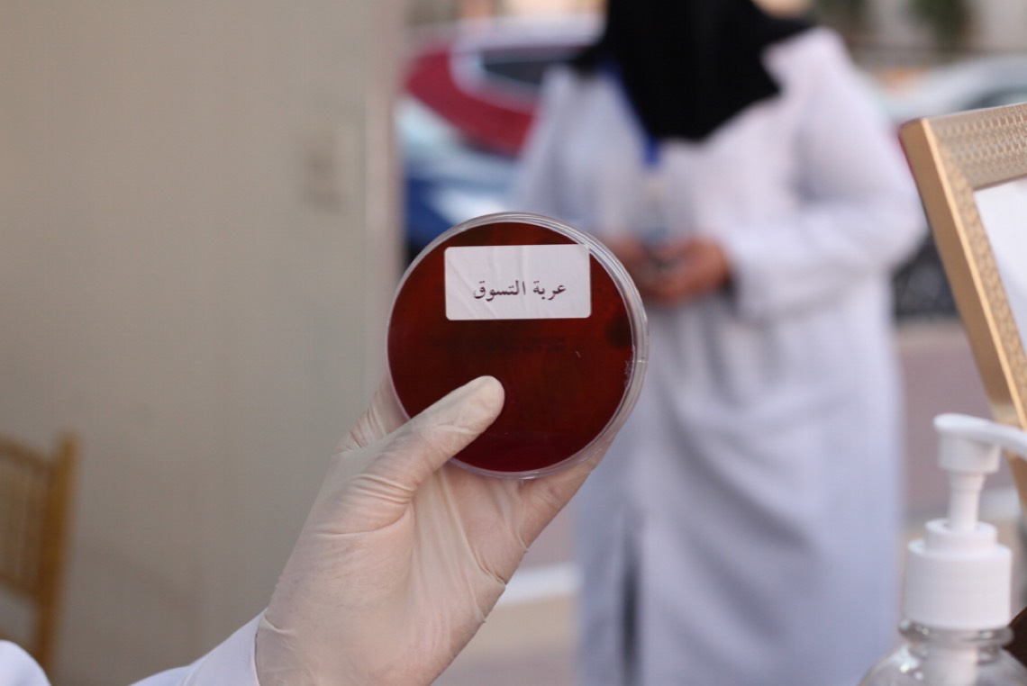 وشرحت أخصائية مختبر سهى الزاير مدى وجود وانتشار الأحياء الدقيقة في البيئة وكيف للبكتيريا أن تعيش وتنتقل من مكان للإخر مما قد تسبب ضرراً للإنسان.