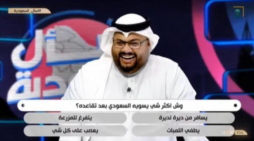 وعرض في حلقته الأخيرة سؤال ”ماذا يفعل السعودي بعد التقاعد؟“، والذي تضمن خيارات متعددة لإجابة السؤال ومنها: ”يطفي اللمبات، يسافر من ديرة لديرة، يعصب على كل شيء“، الأمر الذي أثار غضب المشاهدين الذين اعتبروه استهزاء بالمتقاعدين.