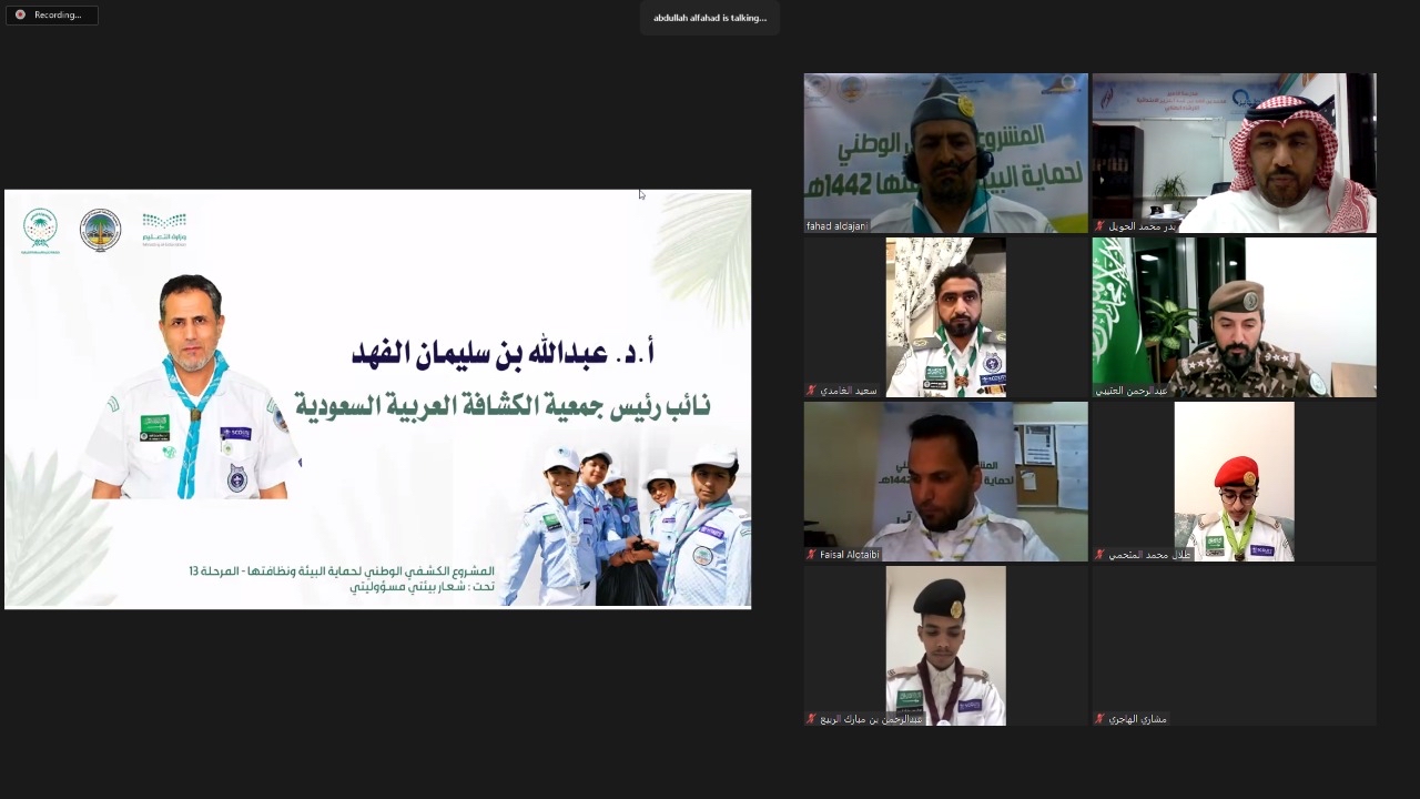 تحت عنوان عنوان ”بيئتي مسؤوليتي“، نظمت كشافة الإدارة العامة للتعليم بالمنطقة الشرقية، ندوة افتراضية، أمس، في إطار المرحلة الثانية عشرة من المشروع الكشفي الوطني لنظافة البيئة وحمايتها الذي تنظمه جمعية الكشافة العربية السعودية.
