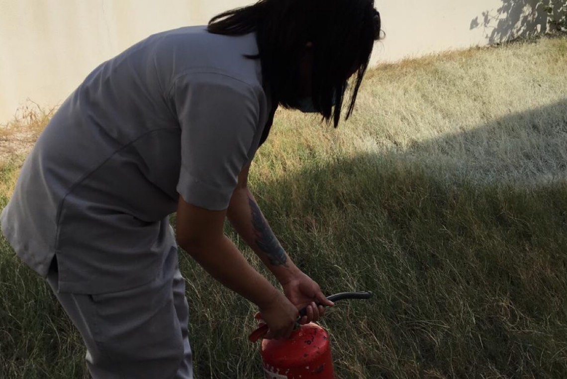 تبع ذلك تدريب عملي على الطريقة الصحيحة لاستخدام طفايات الحريق.