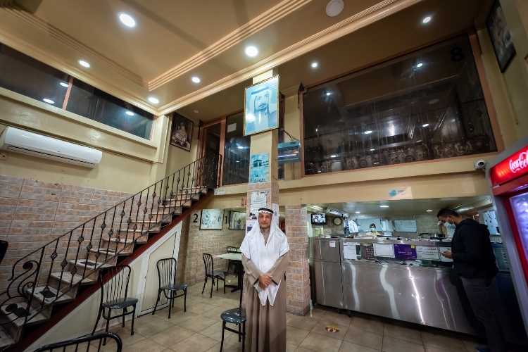 وقال: ”الوالد هو المؤسس للمطعم قبل 60 سنة، ففضّلنا تعليق صورته على الجدار بعد وفاته قبل 20 سنة، وحتى يعرف الزبائن الجدد على المؤسس بالشكل، ويستذكره الزبائن القدامى الذين كانوا يترددون عليه خاصة من البحرين وعمان وقطر“.