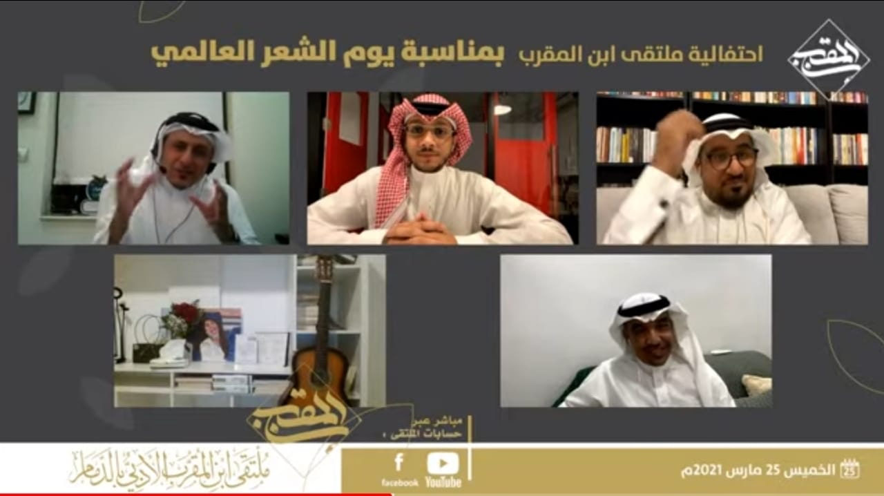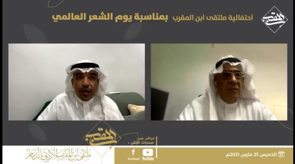 احتفى ملتقى ابن المقرب الأدبي بالدمام، عبر قنواته الإعلامية، ب ”يوم الشعر العالمي“، أمس، مستضيفًا نخبة من الشعراء المميزين.