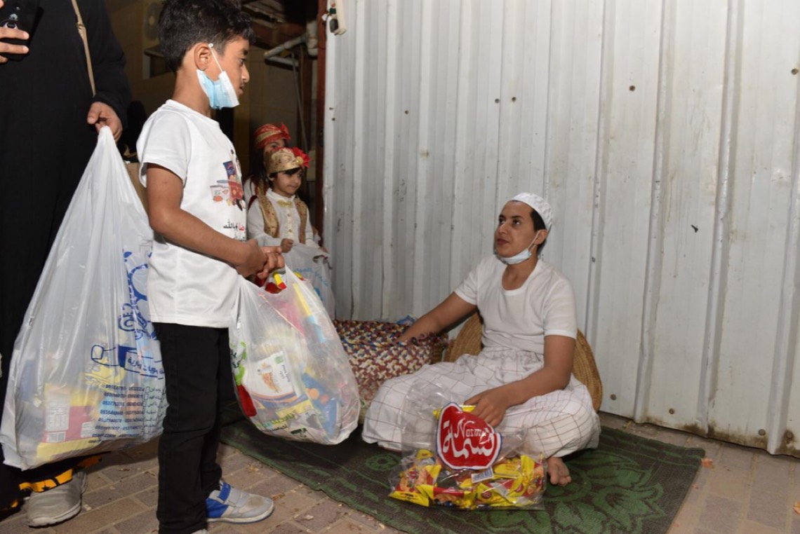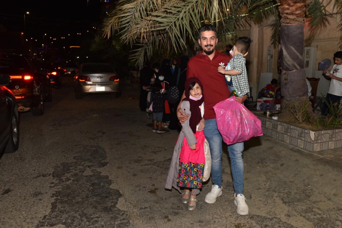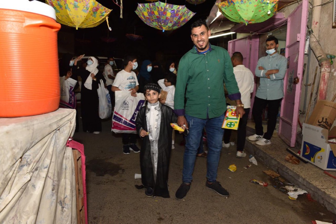 الطفل رضا آل طناب والذي يجر كيسه، قال بأنه سعيد بعودة الناصفة التي اشتاق اليها إلى سابق عهدها، مشيرا إلى النصائح التي شددت عليها أسرته للسماح له للاحتفال مع أصدقاءه.