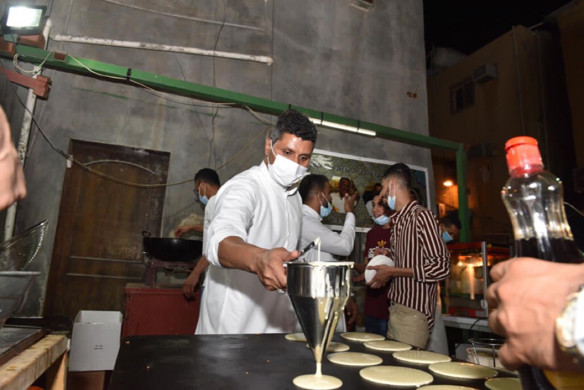 بينما يقف بجانبه جاره الذي يستند على كرسي خشبي وهو يوزع أصناف الحلويات والمكسرات على المارة قائلا بضرورة الموازنة بين الاحتفالات وبين الإجراءات الاحترازية التي تفرضها وزاة الصحة والداخلية، منوهاً بأنه يوزع الأطعمة بحذر شديد.