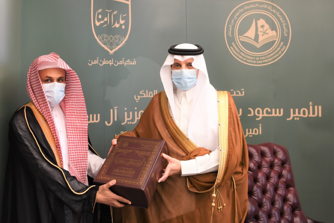 واستمع لشرحٍ عن الحملة وأهدافها من مدير فرع الرئاسة العامة لهيئة الأمر بالمعروف والنهي عن المنكر بالمنطقة الشرقية الشيخ فهد الثبيتي، من خلال توعية أفراد المجتمع في حماية الأمن الفكري، وبيان أهميته، وتعزيز مفهوم الولاء والانتماء واللُّحمة الوطنية والتكاتف وطاعة ولاة الأمر، وأثره في تطور البلاد والازدهار، وإقامة شعائر الدين الإسلامي، وإبراز جهود ولاة الأمر في هذا المجال، والتحذير ممن يُثيرون الفتن، ويسعون لتفريق كلمة المسلمين وشقّ صفّهم.